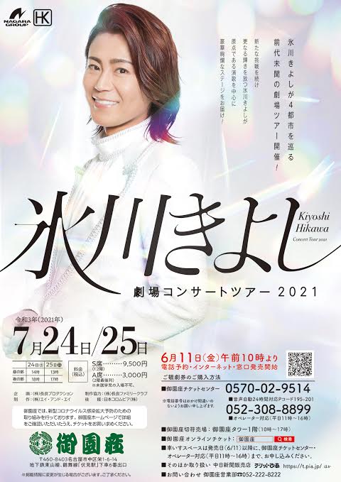 氷川きよし 2021年名古屋御園座4回公演 7月24日初日劇場コンサートツアー 券予約